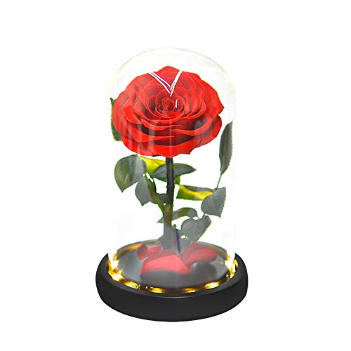 ThreeH Real Rose in Glass Dome Eternal Rose Fiore conservato Regalo per Il Suo Compleanno Festa della Mamma Natale Ringraziamento Rosso