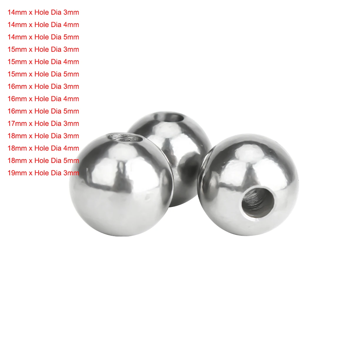 5pcs Through Hole Unthreaded Steel Balls 304 Stainless Steel Solid Piercing Balls Dia 14 15 16 17 18 19mm DIY Beading Round Ball