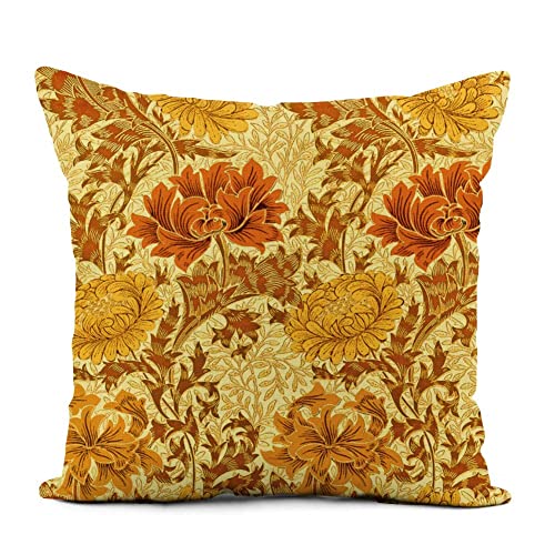 Throw Pillow Case Brown Flowers William Morris Chrysanthemums Mustard Yellow Nouveau Copper Pillow Case Soft Cushion Cover Personalised Throw Cushion Cover for Boys, Gifts, 45X45Cm