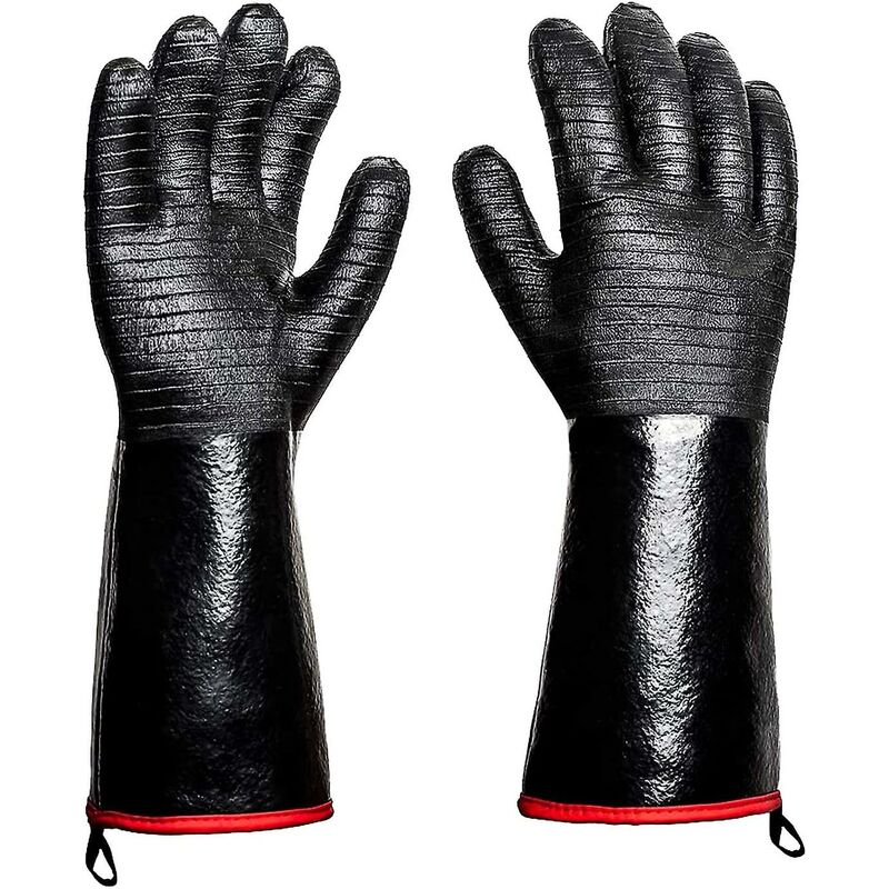 DICA ADDIO ALLE USTIONI FREQUENTI Vieni a conoscere il tuo nuovo compagno di grigliate preferito I nostri guanti da griglia per barbecue sono realizzati in gomma neoprene per uso alimentare, che ha resistenza all'acqua, al fuoco, alle macchie, agli acidi e agli alcali. Inoltre, i nostri guanti per griglia resistenti al calore sono famosi per la loro resistenza alle alte temperature, possono resistere fino a 932F/500C. Con i nostri guanti per barbecue resistenti al calore, non ti preoccupi più che le mani e le braccia vengano bruciate quando si griglia, si cucina, si cuociono e si maneggiano oggetti super caldi . TENERE FISSO IL TUO CIBO Non preoccuparti che il tuo cibo delizioso scivoli di nuovo dalla teglia I nostri guanti da cucina per griglia hanno un silicone denso antiscivolo e resistente al calore su entrambi i lati per garantire che il tuo oggetto non scivoli. Usando il palmo isolato e il design separato a cinque dita, puoi spostare il tuo cibo in modo più comodo e flessibile.