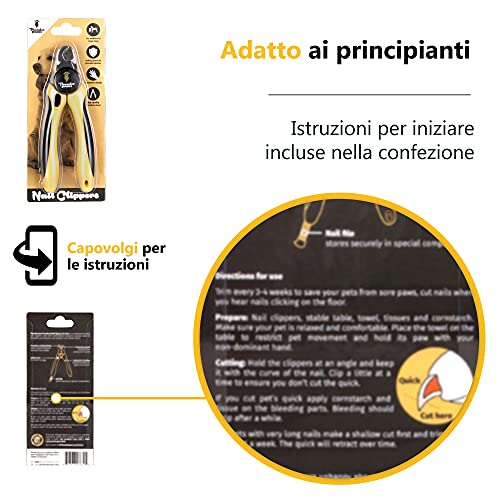 Super facile da usare - Anche se è la prima volta che tagli le unghie del tuo cane, il nostro tagliaunghie ti faciliterà l'esperienza garantendoti risultati ottimali. Istruzioni per il taglio delle unghie presenti anche sulla confezione. Impugnature in gomma antiscivolo progettate in modo ergonomico per una presa confortevole e per garantire un'esperienza di taglio delle unghie e di toelettatura sicura per te e il tuo cane