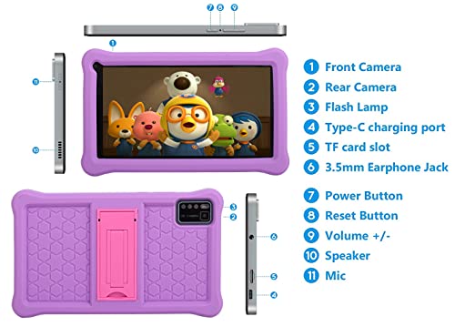 Thunrlge Tablet per Bambini 7 Pollici, Android 11 Tablet,3GB RAM 32GB ROM 128GB espansione, software preinstallato per bambini, certificazione Google, WiFi, Bluetooth, doppia fotocamera.........