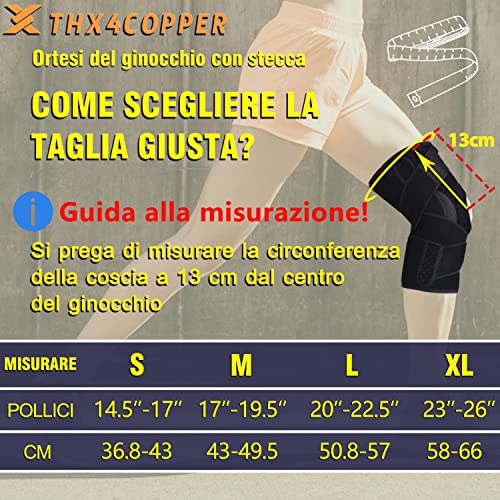 Thx4COPPER Ginocchiera incernierata compressione-Patella aperta regolabile con cinghie e stabilizzatori laterali-Supporto ginocchio per protezione e sollievo dal dolore ACL,MCL, artrite, tendinite-S
