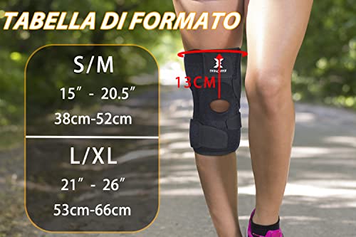 ✔STABILIZZATORI LATERALI INNOVATIVI: Con l'aiuto di cerniere su ciascun lato, la ginocchiera offrirà un comfort ottimale, un maggiore supporto laterale e la massima stabilità. Adatto a persone che soffrono di lesioni al ginocchio, dolore al menisco, stiramenti, recupero, tendinite, artrite, lacrime e distorsioni ACL/MCL/LCL.