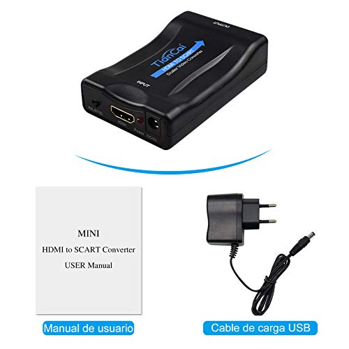 Tiancai Convertitore HDMI a Scart, Adattatore da HDMI a Scart Video Convertitore CVBS Input per PS3 PS4 VCR DVD BLU-Ray Wii TV Box Sky HD