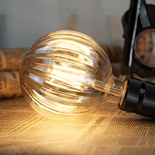 TIANFAN Ampoules LED Vintage 4W Blanc Chaud 2500Kelvin Big Globe Cristal Ampoule LED 220/240V Edison Vis E27 Base Spécialité Ampoule Décorative G125 (Melon)