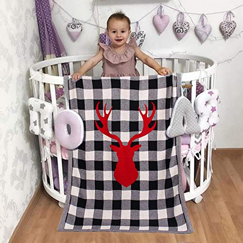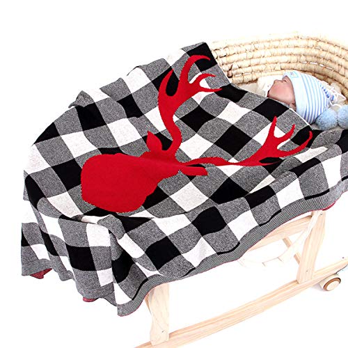 Tianhaik Coperta Lavorata a Maglia Cotone Baby Ragazzi Ragazze Coperta Scozzese di Alce Natalizia Copertura per Allattamento