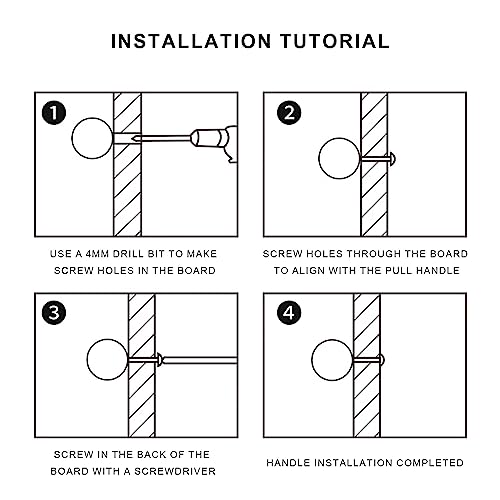 ● Facile da Installare: Ogni maniglia del cassetto ha una vite corrispondente. Basta praticare un foro nella tavola e avvitare la maniglia in posizione.
