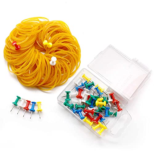TIANLIN 50 Pezzi Puntine da Disegno e 130 Pezzi Elastici, Multicolori per Mappatura Puntine in Plastica, Grandi Elastici per Ufficio Elastic, per la Casa, L'ufficio, L'artigianato Industriale