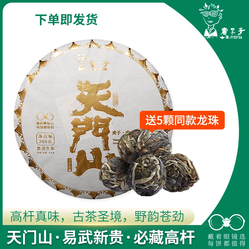 Tea Pu'er Tea 2020 Tianmen Mountain 200G Pu'er Tea Tea Cake 300 Years Gushu Tea