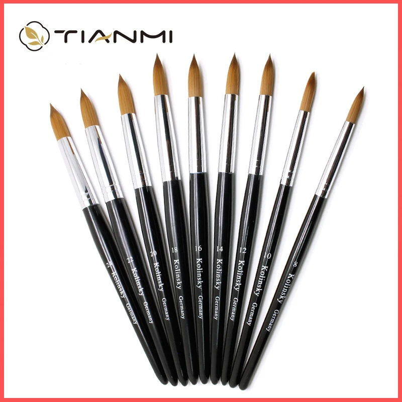 TIANMI Kolinsky Acrylic Nail Brush Black Nail Art Mink Brush Wood Handle Gel Builder Manicure Brush Drawing Tools Size 8-24
