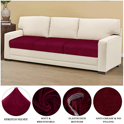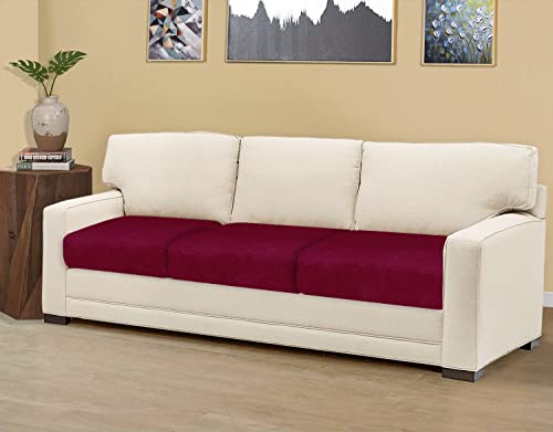 TIANSHU Copriseduta Divano Elasticizzato 3 Fette Copricuscini Divano Velluto Fodera per Cuscino Copridivano Elasticizzato Cuscino per Divano Copri Seduta per Divano (3 Fette, Bordeaux)