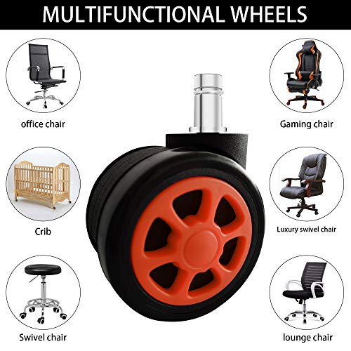 TIANSHU Ruote per sedie da Gioco, rotelle di Ricambio sostituibili con Funzione Anti-scarto e scorrevolezza (5 Pezzi/Set, Arancia)