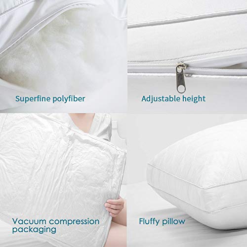 ღ 【Altezza regolabile】 L'altezza dei cuscin è regolabile. C'è una cerniera nascosta sul lato del cuscino e puoi regolare l'altezza rimuovendo parte del riempitivo dalla cerniera. L'altezza corretta del cuscino contribuisce a un sonno più confortevole.