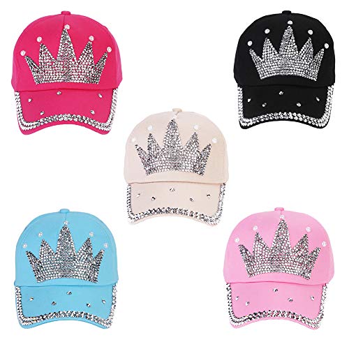 Tianxiangjjeu - Berretto da baseball da donna, con motivo a corona regolabile, con strass, colore: Rosa