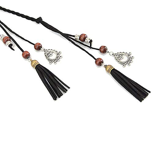 Tianxiangjjeu Cintura da donna Corda intrecciata perline nappe sottili auto-cravatta abito in vita beige