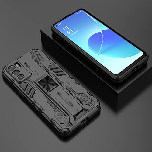 Tianyan Cover OPPO Reno 6 5G,360 Gradi Antiurto [Silicone Gel TPU e PC dura Armor] Dual Layer Anti-Graffio Cover Con Supporto Pieghevole Nascosto Protezione Custodia per OPPO Reno 6 5G,Nero