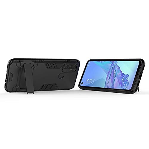 Tianyan Cover Oppo A53 / Oppo A53s,360 Gradi Full Body Silicone Gel TPU e PC Dual Layer Armor Antiurto Cover con Supporto Pieghevole Nascosto Protezione Custodia per Oppo A53 / A53s,Nero