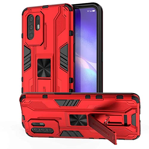 Tianyan Cover OPPO A94 5G / Reno 5Z 5G,Dual Layer Armor Antiurto Silicone Gel TPU e PC dura Anti-Graffio Cover Con Supporto Pieghevole Nascosto Protezione Custodia per OPPO A94 5G,rosso