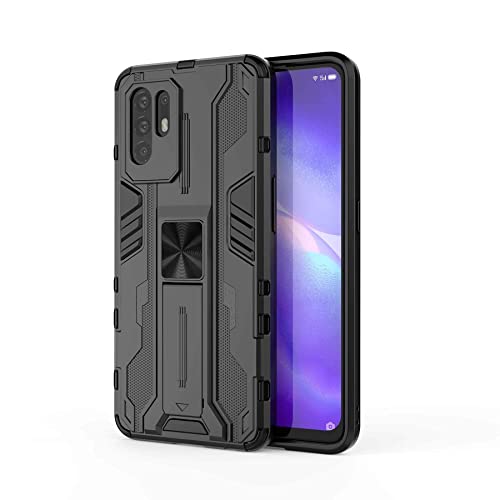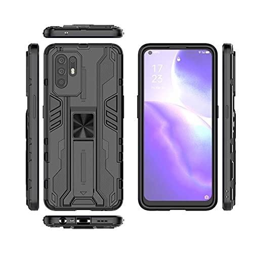 Tianyan Cover OPPO A94 5G / Reno 5Z 5G,Dual Layer Armor Antiurto Silicone Gel TPU e PC dura Anti-Graffio Cover Con Supporto Pieghevole Nascosto Protezione Custodia per OPPO A94 5G,Nero