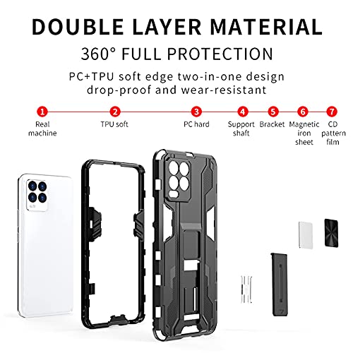 Tianyan Cover Realme 8 Pro/Realme 8 4G,Dual Layer Armor Antiurto Silicone Gel TPU e PC dura Anti-Graffio Cover Con Supporto Pieghevole Nascosto Protezione Custodia per Realme 8 Pro/Realme 8,Nero