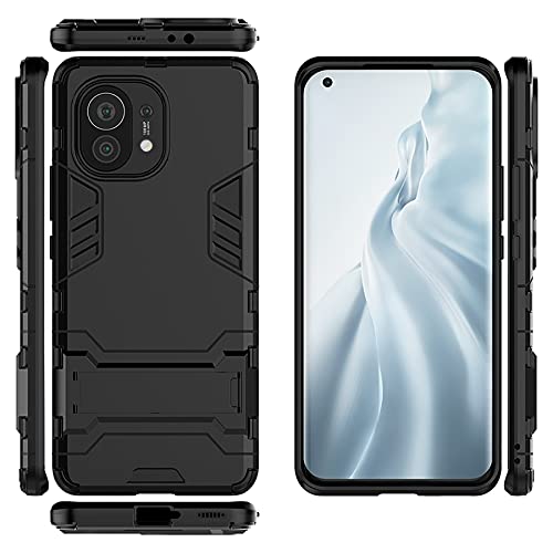 Tianyan Cover Xiaomi Mi 11 5G,360 Gradi Full Body Silicone Gel TPU e PC Dual Layer Armor Antiurto Cover con Supporto Pieghevole Nascosto Protezione Custodia per Xiaomi Mi 11 5G,Nero
