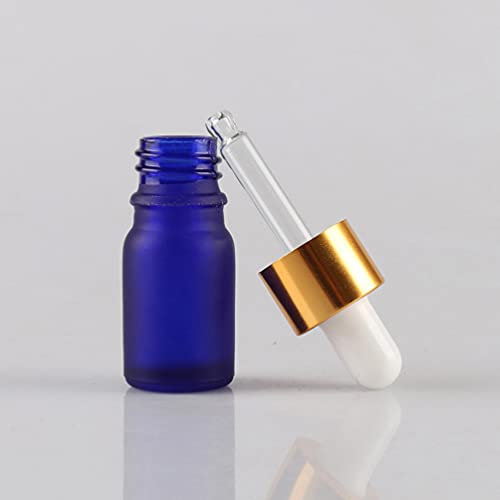 TIANZD 24 Pezzi 5 ml Bottiglie Contagocce in Vetro Blu Opaco con Pipetta Tappo a Vite Oro per Oli Essenziali, Contenitori di Aromaterapia, Cosmetici