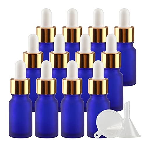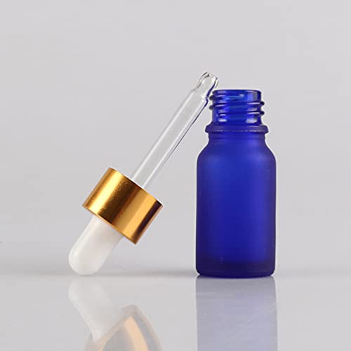 TIANZD 24 Pezzi 10 ml Bottiglie Contagocce in Vetro Blu Opaco con Pipetta Tappo a Vite Oro per Oli Essenziali, Contenitori di Aromaterapia, Cosmetici