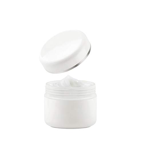 TIANZD 20 Pezzo Barattolo Vuoto di Plastica Bianca da 150 ml con Nastro d'argento Barattolo di Cosmetico Contenitore per Prodotti di Cosmetica Creme Balsami Labbra con 5x spatole