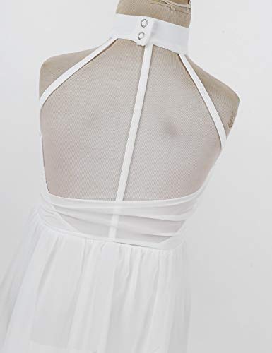 TiaoBug Abito da Pattinaggio Artistico Bambina Chiffon Leotards Body da Danza Classica Vestito da Balletto Abito da Ballo Latino Ballerina Samba Rumba Salsa Jazz Dancewear Avorio 5-6 Anni