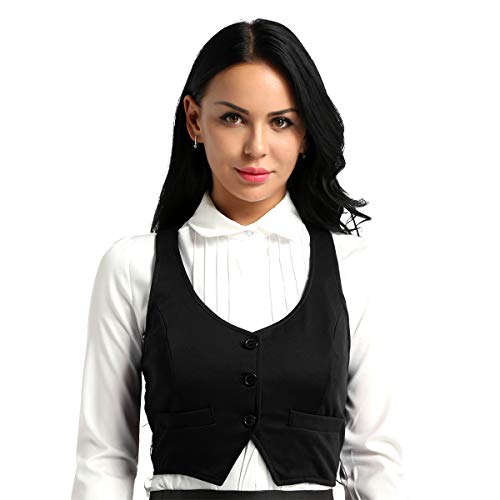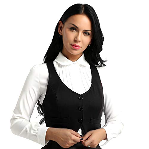 TiaoBug Gilet Smanicato V-Neck Donna Monopetto Gilet da Ufficio Tailleur Business Giacca Elegante Primaverile Autunno Panciotto Aderente Basic Moda Blazer Slim Fit Nero D M