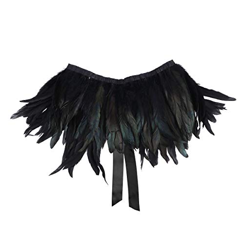 TiaoBug Scialle con Piume Donna Body Chest Harness Mantella Nera Stile Gotico Vittorano Accessori per Cosplay Halloween Carnevale Travestimento Coprispalle Clubwear Nero B One_Size