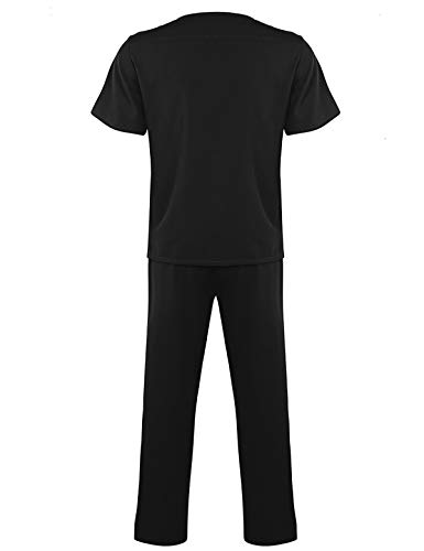 TiaoBug Unisex Uniformi Sanitaria da Uomo e Donna per Medico Infermiere Chirurgo Divisa Ospedaliera da Lavoro e Studente Medicale Casacca Scollo a V + Pantaloni Nero M