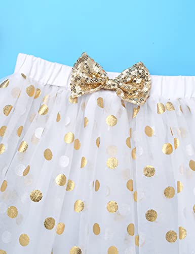 Gonna a 4 strati in tutu, lo strato superiore in mesh è decorato con pois lucidi, 2 strati di mesh e 1 strato di rivestimento. Cintura elastica con fiocco in nodo cucito sul davanti