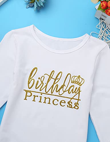 Top in cotone smanicato, davanti stampato con lettere glitterate "Birthday Princess" e motivo a corona
