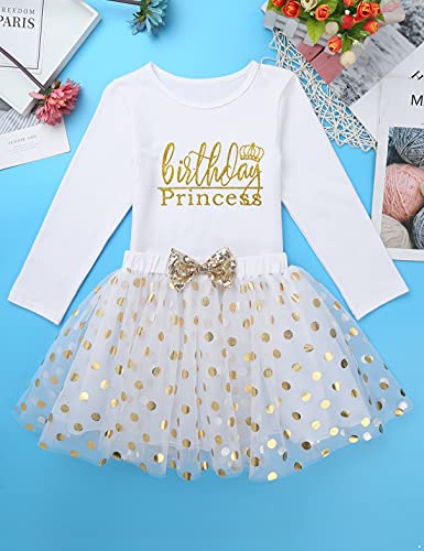 Top in cotone smanicato, davanti stampato con lettere glitterate "Birthday Princess" e motivo a corona