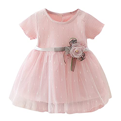 TiaoBug Vestito da Cerimonia Neonata Abito da Battesimo Bimba Cotone Vestito da Principessa Tutu Fiori 3D Abito da Sposa Matrimonio Damigella Flower Girl Compleanno Rosa 0-3 Mesi