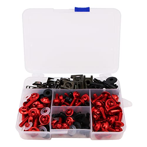 Tiardey Kit bulloni e Dadi per carenatura Moto Universale 177 Pezzi Viti per carrozzeria, Set di Cappucci per Viti Moto - Rosso