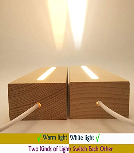 Tiardey Base per Display con luci a LED rettangolari in Legno di Supporto per Base in Legno Illuminato in Cristallo - Luce di Transizione Giallo-Bianca