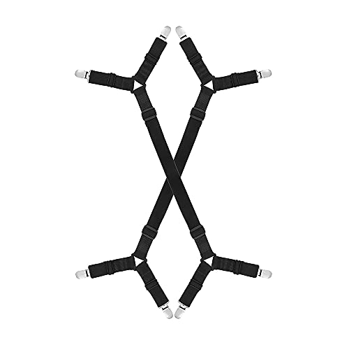 Tiardey 2 Pezzi di Fissaggio per Lenzuolo Nero, Cinghie Ferma-Lenzuolo Lunghe Regolabili Clip per Lenzuola Resistenti per Tutti i materassi Quadrati Lenzuola con Angoli Lenzuola Piatte