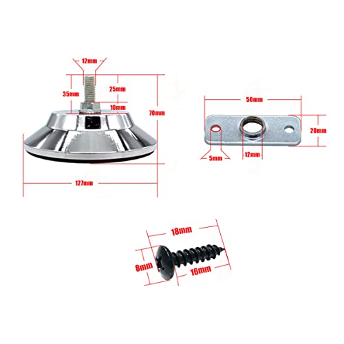 Dimensioni: il diametro della base: 12,7 cm, altezza complessiva: 7 mm. Ogni livellatore può essere regolato in altezza da 5 cm a 7 cm. Può soddisfare la diversa lunghezza per ogni gamba necessaria