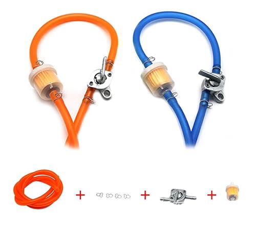 Universale 2PCS Valvola del Serbatoio Del Carburante Rubinetto del Carburante, Interruttore del Rubinetto del Carburante Filtro della Benzina con Fibbia del Tubo dell'Olio per Serbatoi del Carburante del Motore a Gas del Generatore - Arancione e Blu