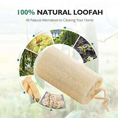 TIAXU 4 spugne di luffa, 100% spugna naturale di luffa, per la cura del corpo, la cucina, il bagno, lo scrubber e il sapone di luffa, per uomo e donna