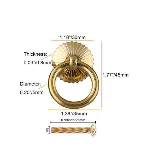 Tiazza - 4 anelli in ottone anticato con maniglia per armadietti da cucina, cassetti, mobili in stile retrò, piccolo anello (oro)