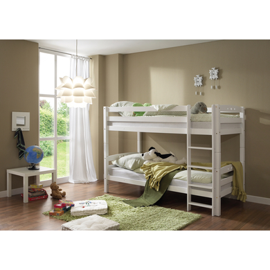 TICAA Letto a Castello LUPO, faggio bianco Questo letto a castello ha uno stile classico che resiste nel tempo. La scala si può montare da entrambi i lati. Una protezione anti caduta assicura la sicurezza al bambino. Caratteristiche: •
