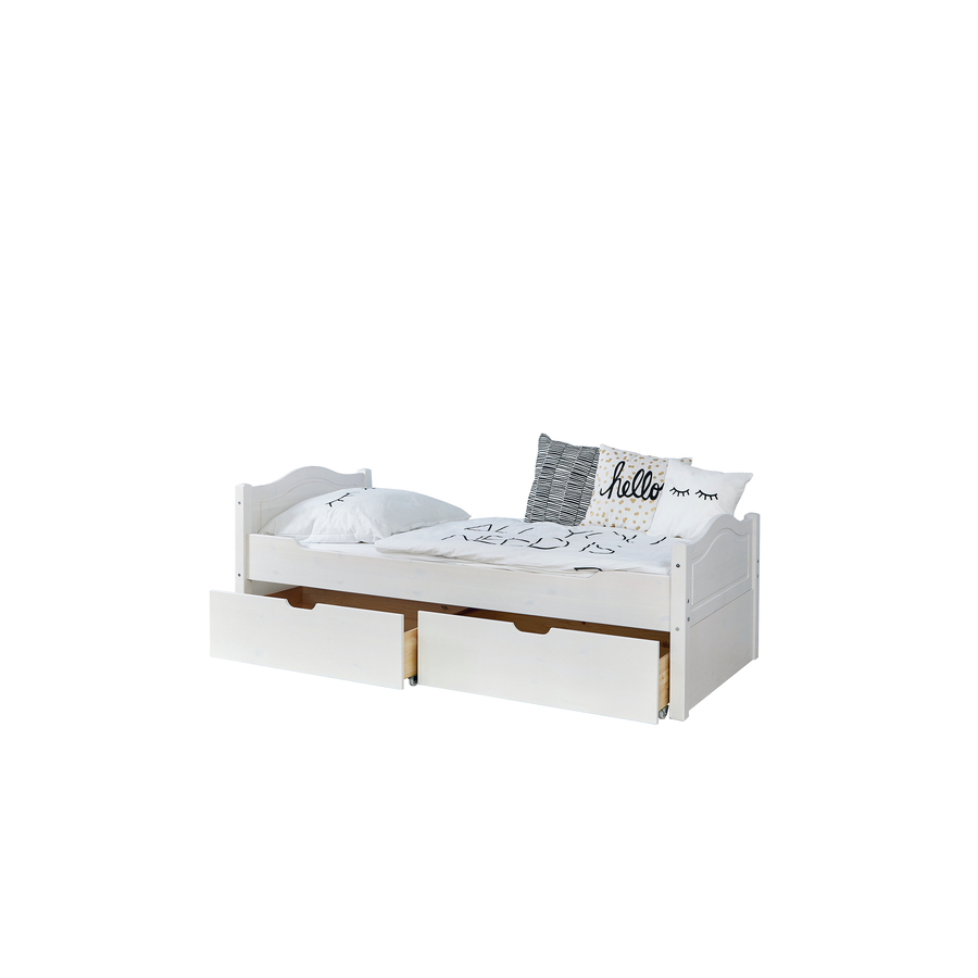 Il letto singolo Leni convince grazie alle bellissime testiere e pedane e può essere facilmente ampliato con funzioni pratiche grazie ai diversi cassetti aden . Realizzato in legno di pino di alta qualità. Dettagli tecnici: Letto singolo Colore: bianco Materiale: pino massiccio, verniciato Superficie di sdraio: larghezza x lunghezza 100 x 200 cm Dimensioni: larghezza x lunghezza x altezza 109 x 211 x 73,5 - 78 cm Altezza massima del materasso: 16 - 25 cm spessore del palo: 5,4 x 5,4 cm 2 Spinta aden Incluso nella consegna: Letto singolo 2 Spinta aden Attenzione: griglia avvolgibile, materasso e decorazione non sono compresi nella fornitura