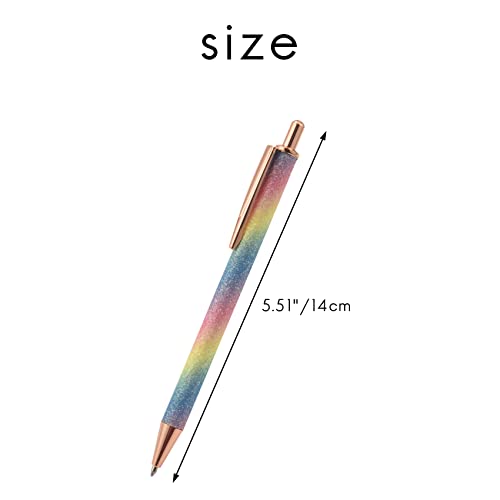 Ticarus 6 penne a sfera glitterate, rosa, punta media, in metallo, inchiostro nero