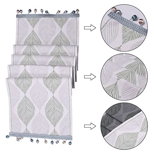 Ticarus Runner da Tavola nel Cotone e Lino Lungo 72 Pollici, Runner da Tavola Primaverili Foglie Verdi Della Fattoria con Nappe, Cucina di Casa Sala da Pranzo 35*180cm