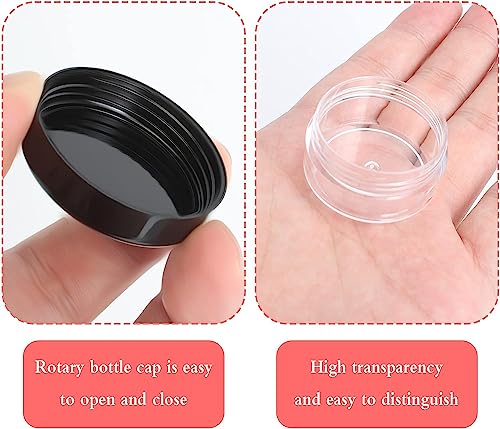 【FACILE DA DISTINGUARE】: i piccoli barattoli cosmetici vuoti sono trasparenti in modo da poter vedere chiaramente l'interno. E viene fornito con 80 etichette adesive rotonde per aiutarti a distinguere rapidamente e ottenere il contenuto di cui hai bisogno.