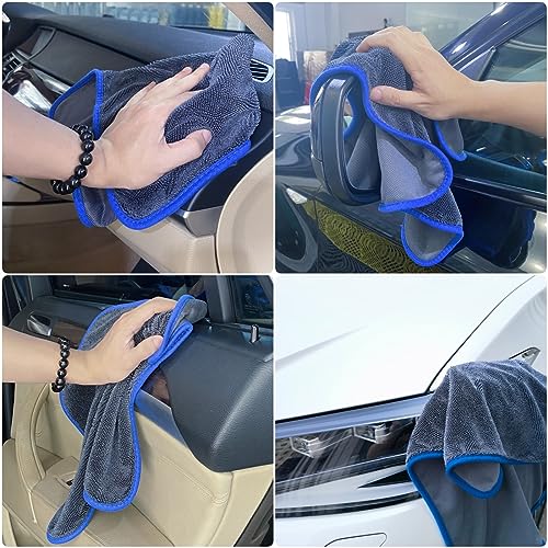 Ticfly 2 Pezzi Panno Microfibra Auto 600GSM, Panno Asciugatura Auto,Panni per Asciugatura ad Alto Grado di Assorbimento e Resistenza Per la Pulizia di Auto e Moto,40x40CM Grigio